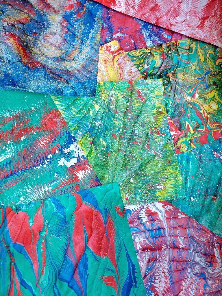 Marbled Paper, June 2022Coptic journals, 120 pages each, 20lb text (white w/printed grey lines); covers made with Chiyogami paper. Custom for client.A custom binding of The Great Gatsby, typeset and printed on 20lb text (cream).Paste Paper, 8.5×11 Canson mixed media (x2) for custom coptic journal coversPaste Paper, 11×14 Canson mixed media for custom journal coverMarbled Paper, 11×14 Texoprint; broken Tiger’s Eye “confetti” with silverMarbled Paper, 11×14 texoprint